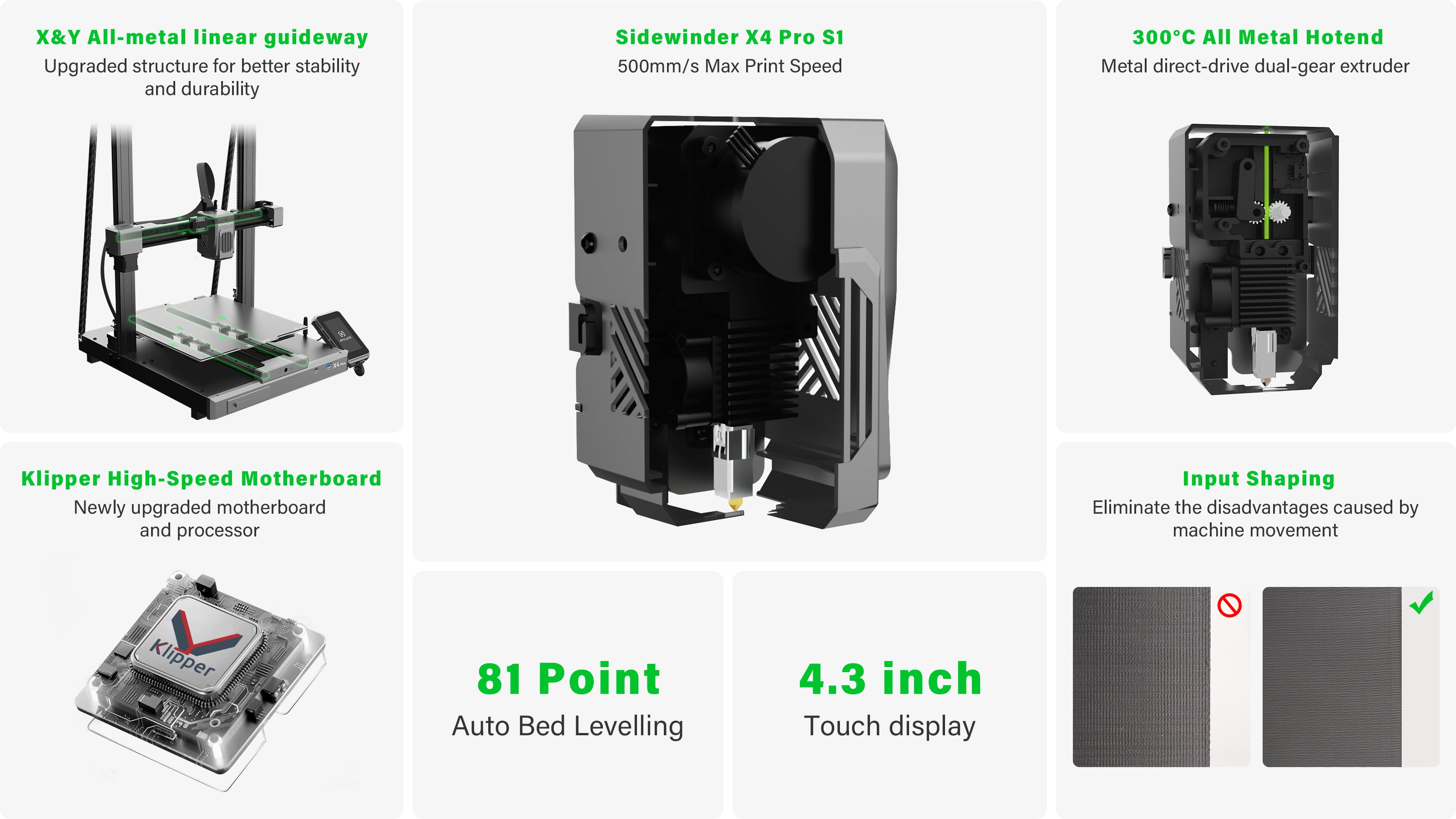 Embedded with a quiet Klipper motherboard and ARM 64-bit 1.5GHZ main frequency quad-core high-performance processor. Advanced features like Input Shaping and Pressure Advance ensure high speed printing in excellent quality by minimizing printer vibration and shaking.