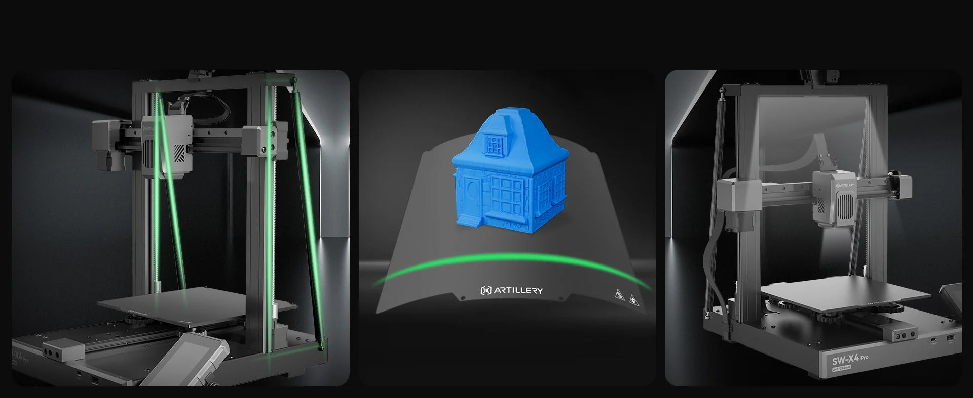 Having carriage slides containing ball bearings on the X and Y-axis, this superior linear rail structure offers the Artillery Sidewinder X4 PRO greater precision better mounting, and smoother motion, ensuring an amazing quality of your final build under high-speed 3D printing.